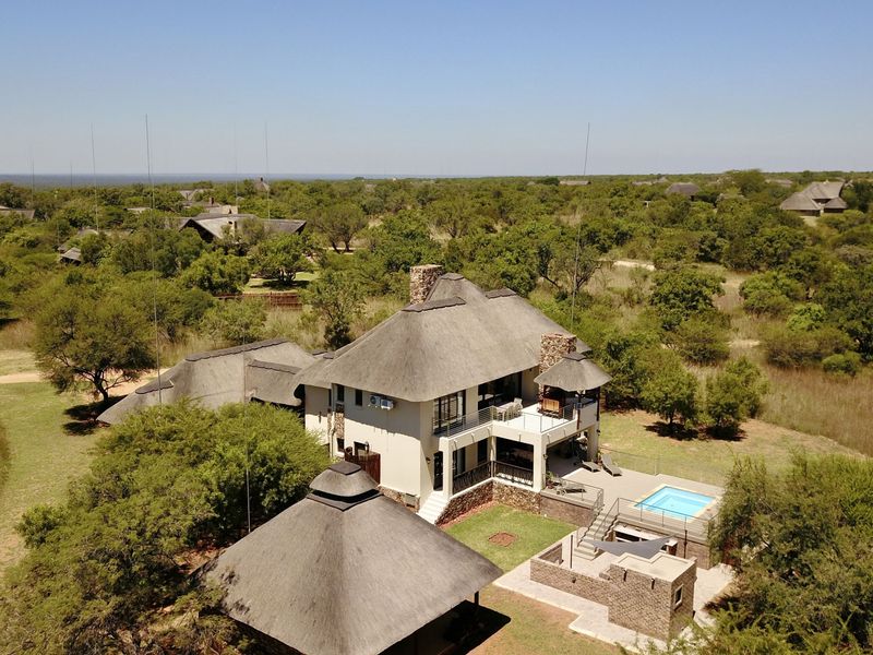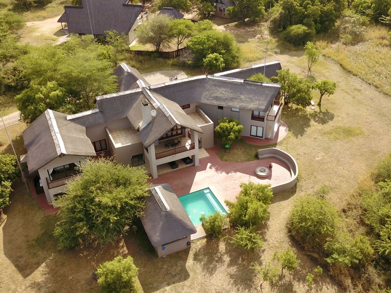Escape to Zebula Golf Estate living—bushveld retreats with Waterberg mountain views, covered patio and pool, fire‑pit boma, and a thatched 7‑bedroom home ideal for entertaining.