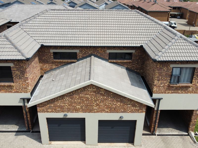 Family-focused living in a secure estate with easy holiday braaiing in a private garden, open-plan kitchen, upstairs en-suite balconies, and automated double garage — three beds, three baths.