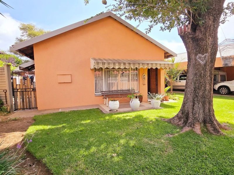 Relaxed family living in Orkney with schools, shops and highways nearby; features an enclosed lapa with built-in braai — four bedrooms, two bathrooms, double garage.