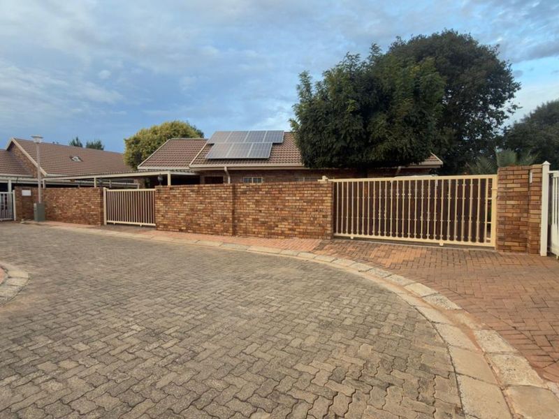 Entertain on a covered patio with built‑in braai overlooking a private garden with 5000L JoJo tank and greywater system in a secure walled complex. Three beds, two baths, double carport.