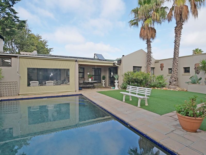 Relaxed West Beach lifestyle — open-plan entertaining flows to a poolside patio and braai, spa-bath main suite, skylit bedrooms, cosy fireplace, double garage.
