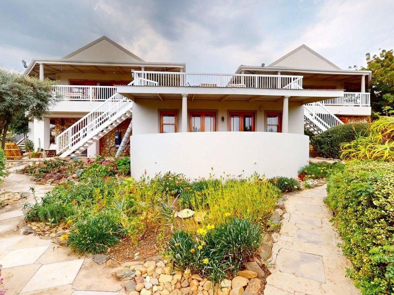 Classic Karoo guesthouse in Calitzdorp with sweeping Swartberge views, pool, Karoo garden and braai. Includes honeymoon suite, wine cellar and separate one-bedroom cottage — 7 beds, 7 baths.