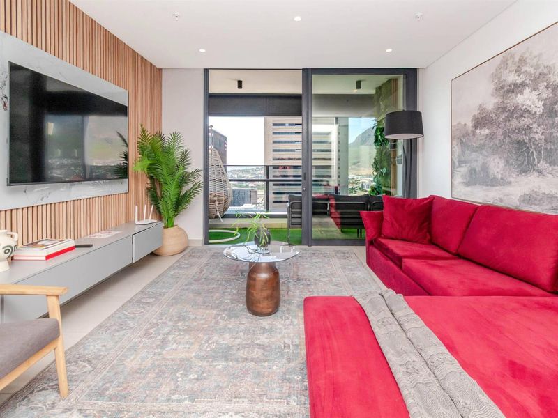 Sophisticated city living with rooftop pool, built-in barbecue and sweeping Table Mountain views — footsteps from Bree Street dining; two bedrooms and two-and-a-half bathrooms.