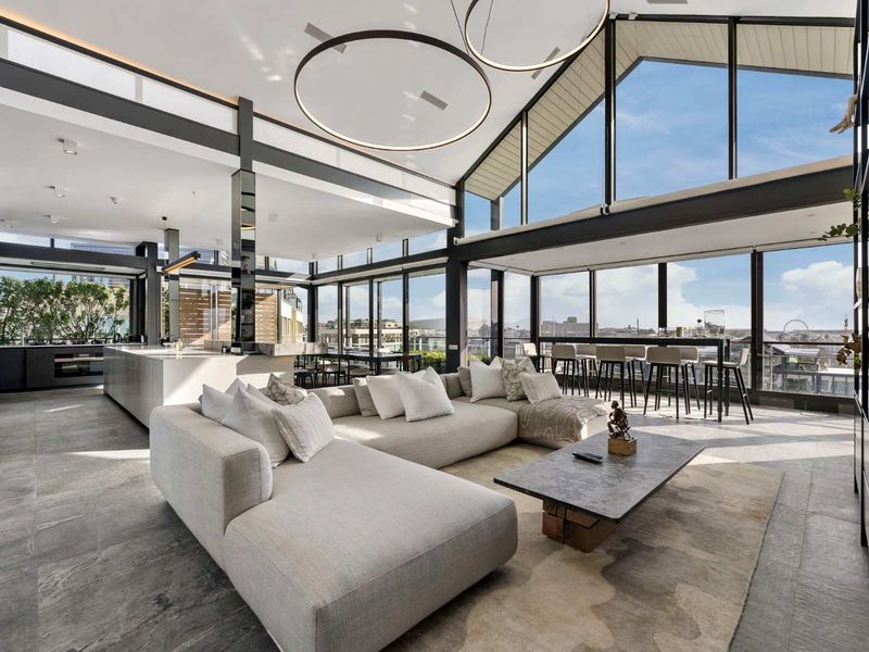 Waterfront penthouse living at the V&A Waterfront with uninterrupted marina and Table Mountain views, expansive balcony with barbecue kitchen, chef’s kitchen, direct lift access — three bedrooms, three parking.