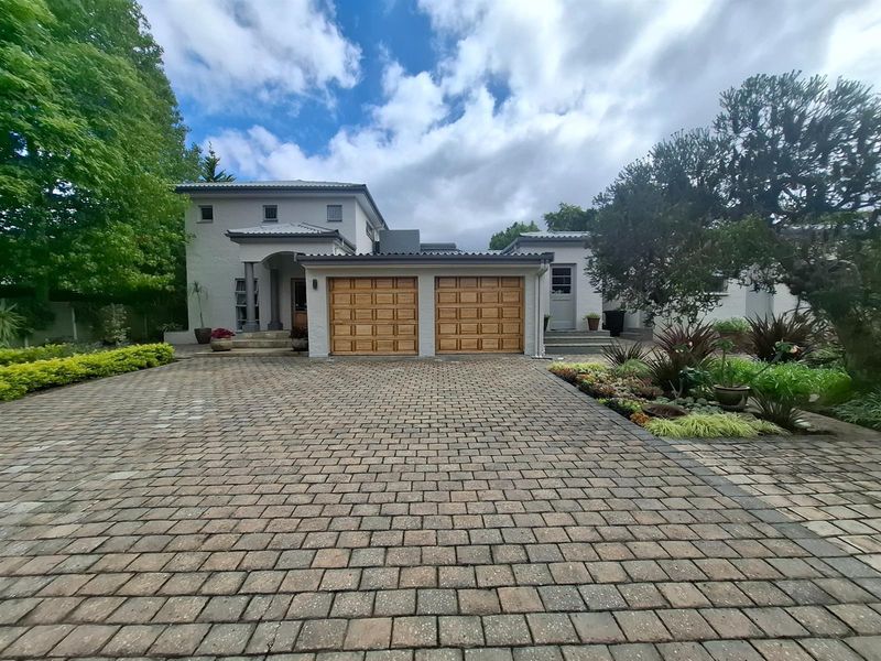 Relaxed family living in a peaceful garden setting with seamless indoor-outdoor entertaining — undercover braai room with stacker doors to pool and garden; five bedrooms, three baths, double garage.