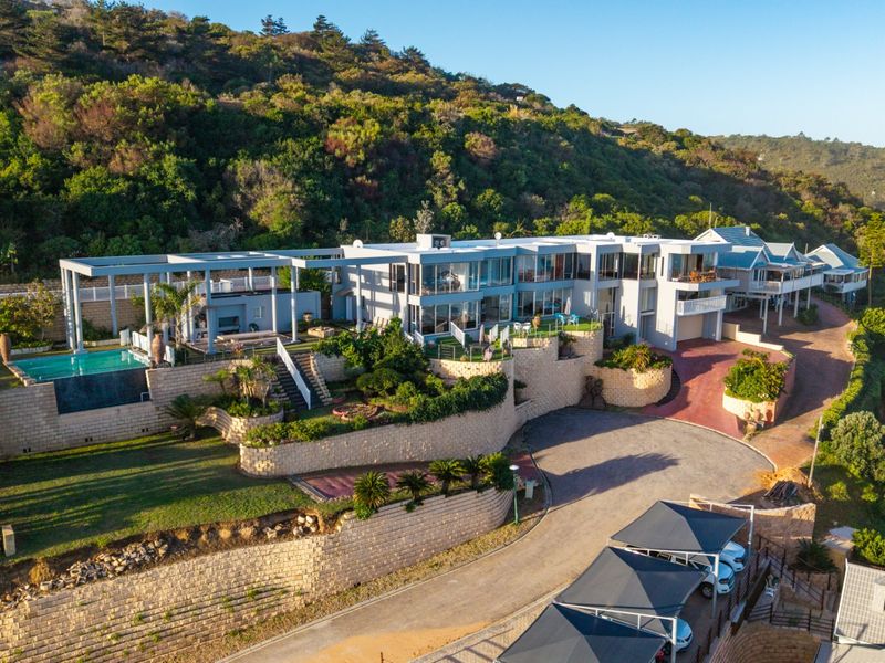 Elevated coastal living in Outeniqua Strand with uninterrupted ocean views and private natural backdrop. Three self-catering units, home cinema, pool and lift—seven bedrooms, five bathrooms.