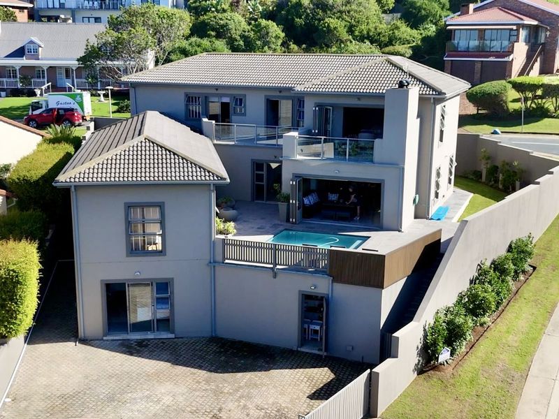 Seaside entertaining and effortless indoor-outdoor living on a corner stand just 300m from Outeniqua Strand beach, with pool, enclosed braai room and ocean views.