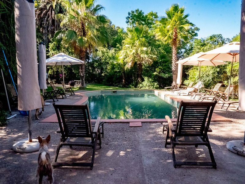 Escape to a cultured riverfront retreat on the West Coast, an hour from Cape Town, with exotic established gardens, expansive saltwater pool, and eight en-suite bedrooms.