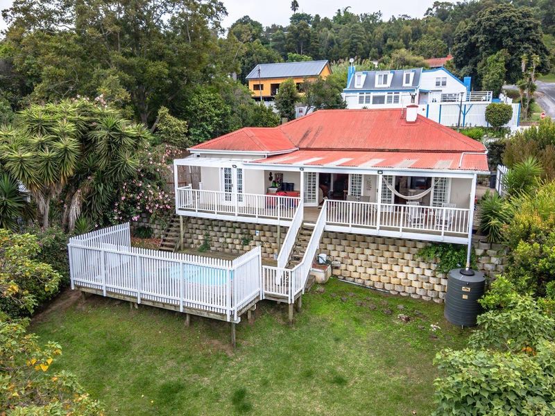Relaxed family living with elevated lagoon views in Upper Knysna Central, steps from Knysna High School and shops; full-length wooden deck, pool terrace, private established garden and three bedrooms.