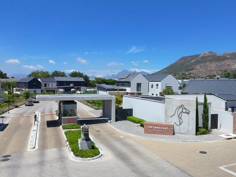 Embrace Winelands living in Lemoenkloof's Optenhorst Estate — seamless indoor‑outdoor entertaining on an expansive balcony with mountain views; three bedrooms, 3.5 baths and automated double garage.