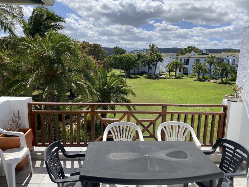 Riverfront lifestyle with easy beach access—first-floor furnished unit opens to a patio overlooking lawns, direct Keurbooms River access, communal pool, tennis court; two bedrooms, two bathrooms, two parking spaces.