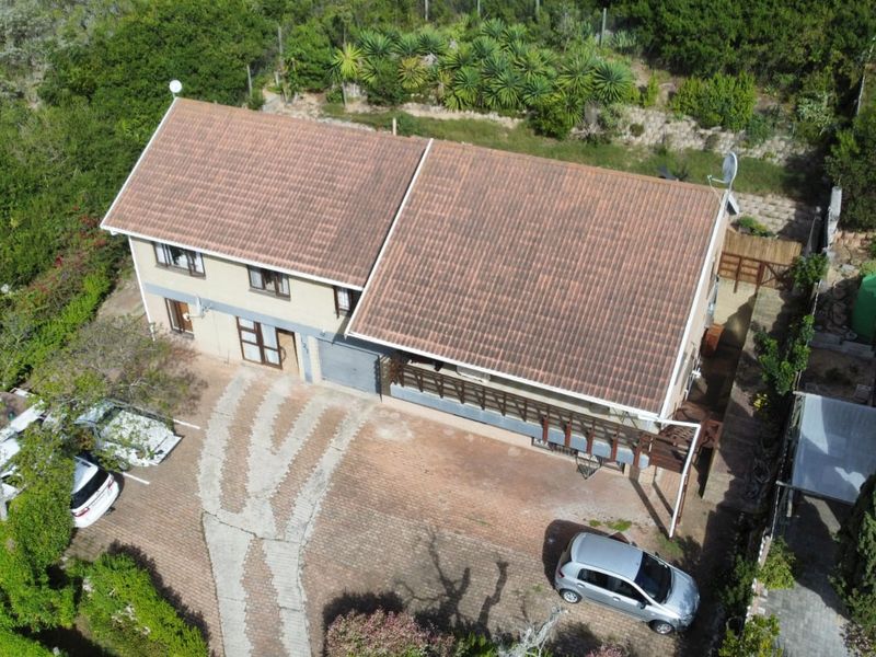 Relaxed Garden Route living on an elevated stand with mountain views, two self-contained flatlets for income, private patio and pet-friendly garden — seven beds, four baths.