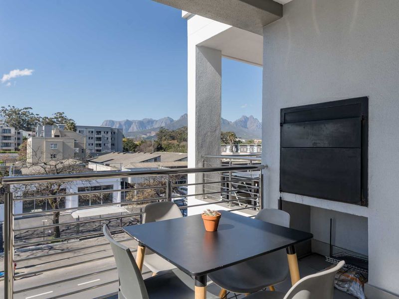 Live steps from Stellenbosch University and café-lined Bird Street in this modern apartment, open-plan living with balcony braai — ideal lock-up-and-go; two beds, two baths, two parking.