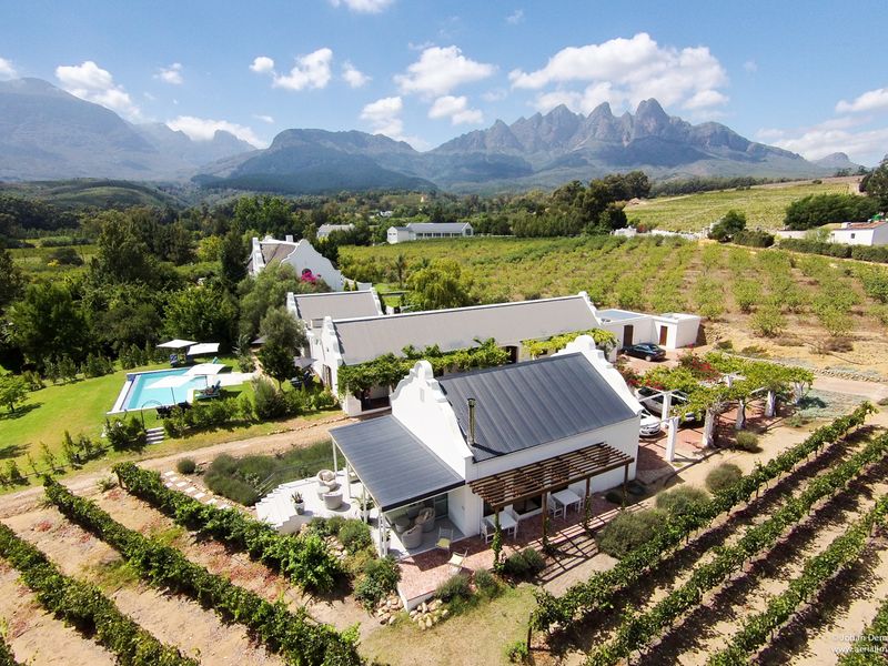 Embrace Winelands living on a private Bovlei estate in Wellington, with vineyards producing award-winning wines, guava orchards, Cape Dutch homestead, guesthouse and restaurant with mountain views.