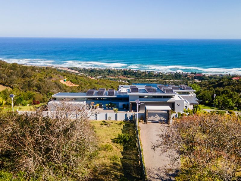 Elevated coastal living in Wilderness Heights with panoramic 180° Indian Ocean views, heated pool and terraced gardens, designer kitchen and versatile flatlet — five bedrooms, seven bathrooms, triple garage.