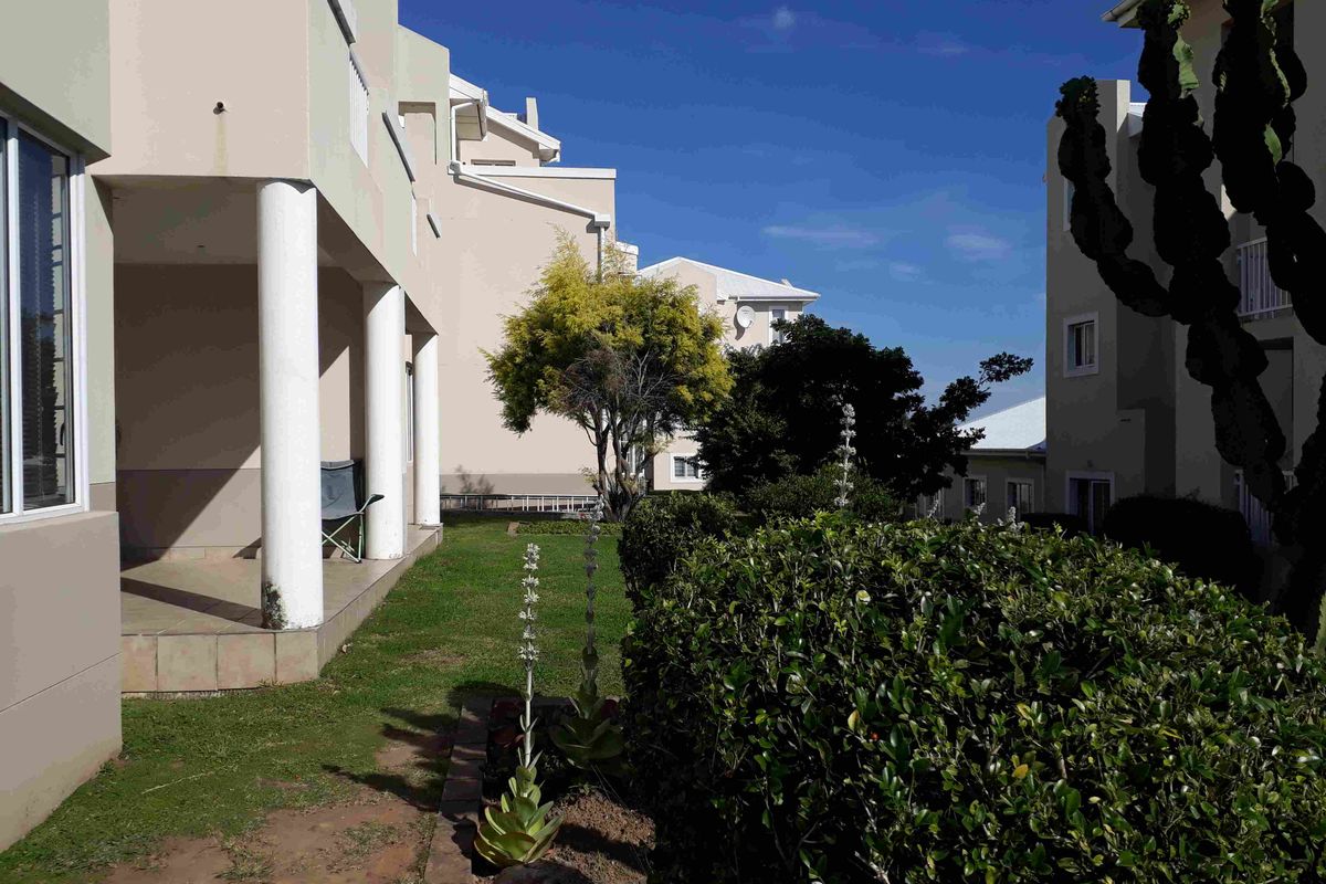 Relaxed, secure Beacon Bay living close to amenities — ground-floor open-plan unit with small patio, communal pools and braai areas; two bedrooms, two bathrooms, covered and open parking.