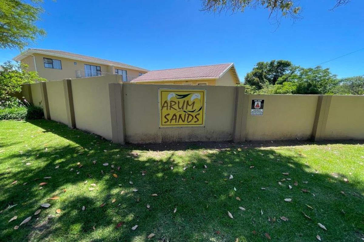 Enjoy relaxed coastal living in Arum Sands, Gonubie — open-plan lounge and kitchen flowing to a private balcony for morning coffee; secure complex with two bedrooms and one bathroom.