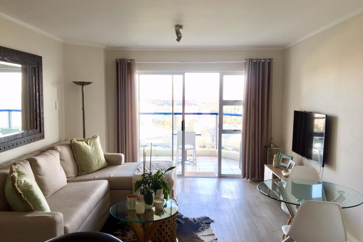 Ultra modern, renovated, executive top floor furnished apartment available on Port Elizabeth beachfront. Enjoy the beautiful sea views and wonderful sunsets from your balcony. Walking through the entrance into a beautiful kitchen with stove and appliances. The kitchen leads into a relaxing open plan lounge and dining area. From the lounge you access a private balcony to enjoy your morning cup of coffee or a braai in the evenings overlooking the harbour and ocean. The apartment offers two spacious bedrooms with built-in-cupboards and two bathrooms with the main bathroom en-suite. The main bedroom features beautiful white shutters covering the windows and door leading to balcony. This apartment has easy access to the secure pool area for total relaxation. PLUS: A lock up garage with added small storage space inside is allocated to this apartment. This is a sought after safe and secure complex and offers a perfect lock-up-and-go lifestyle. Tenant pays monthly rental plus deposit plus own electricity and DSTV. Wifi and other utilities are included in the rental per month as well as a cleaning lady on certain days to clean apartment and wash bedding only. Walking distance to top restaurants and to the beach and other amenities. Long lease available - 6 or 12 months. Please call me for an exclusive viewing. Available 1 June 2026 at R17600 per month. Deposit will be required.