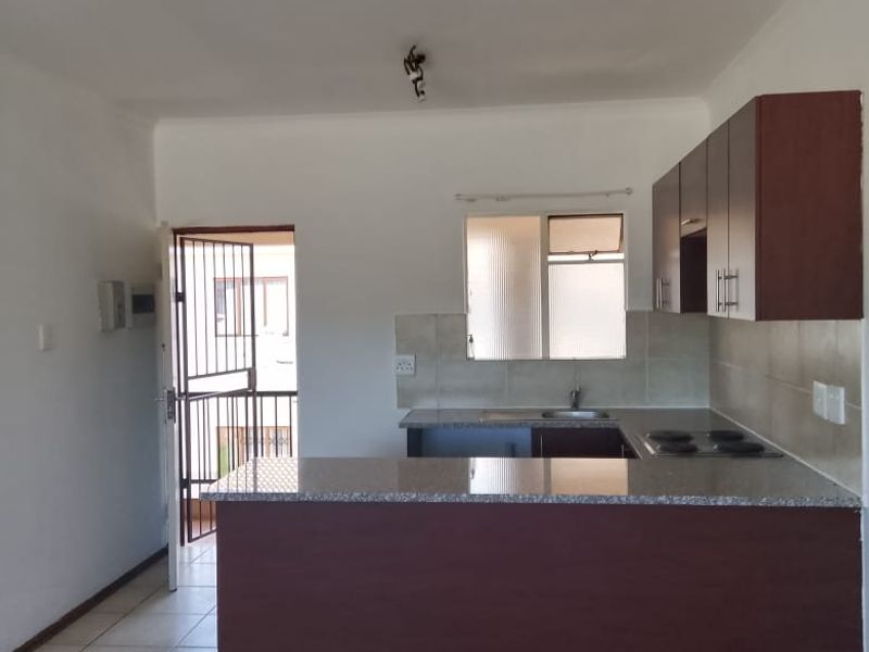 Community-focused living near main routes and highways, with pool, kids' play area and braai areas for weekend gatherings. Upmarket two-bedroom, one-bath unit with covered parking.