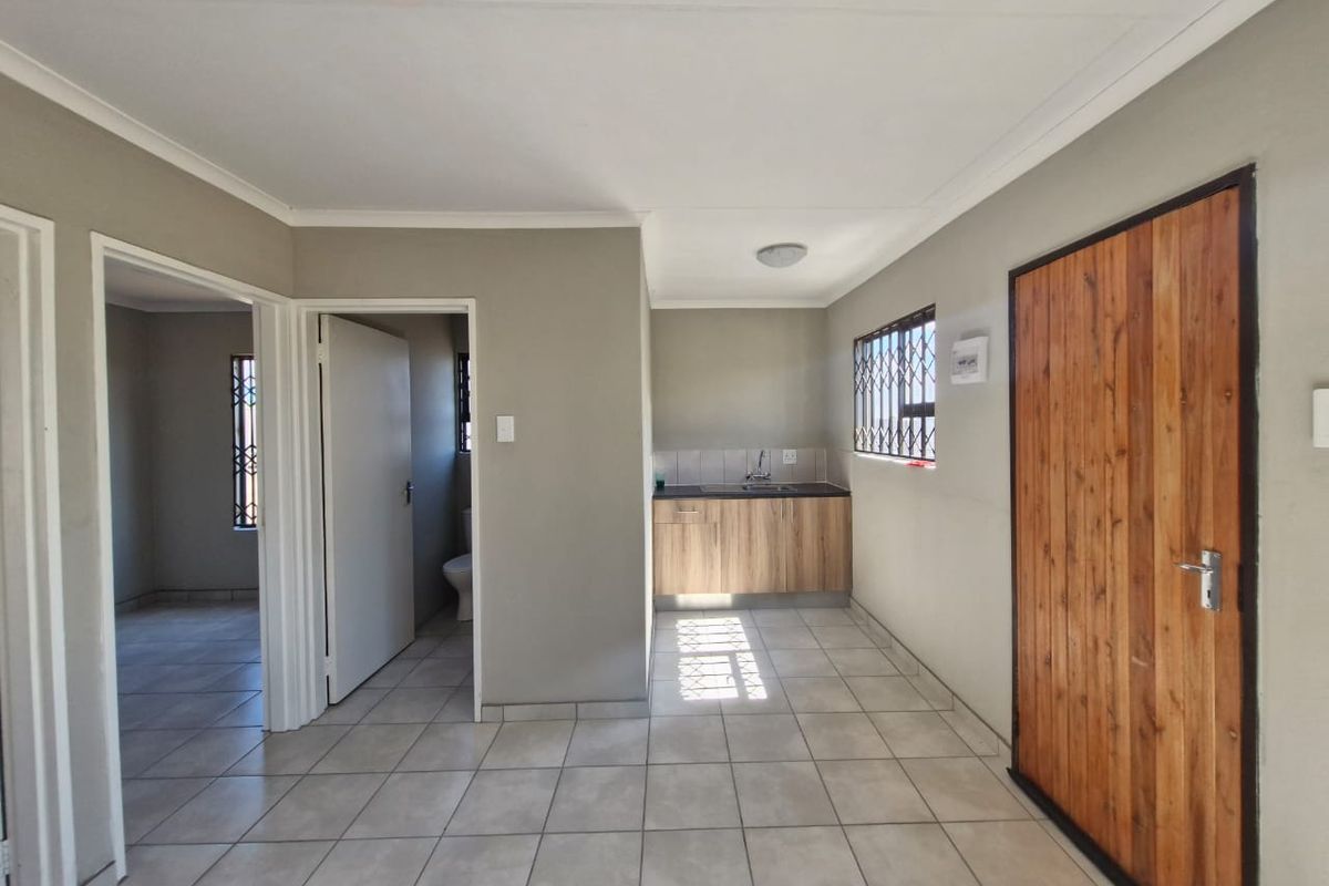 This secure apartment offers two tiled bedrooms without built-in wardrobes, one bathroom with a shower only, and an open-plan living area. It is located in a controlled-access neighbourhood and includes prepaid electricity, with a fixed water charge of R250 per month until municipal billing is activated