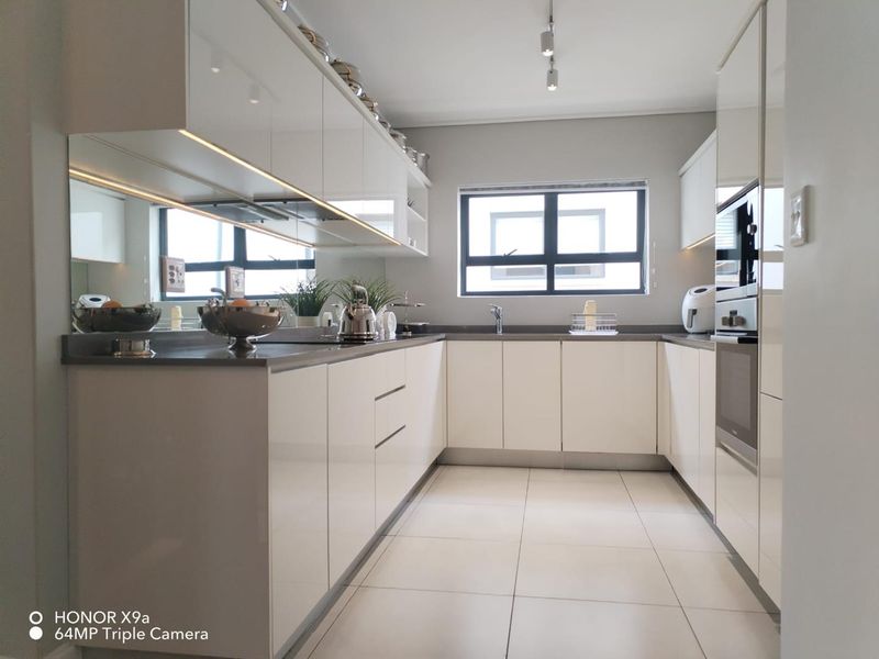 Resort-style living at Eye of Africa — a north-facing first-floor apartment with private patio and built-in gas braai, access to restaurants, pool and trails; three bedrooms, two bathrooms, two parking bays.