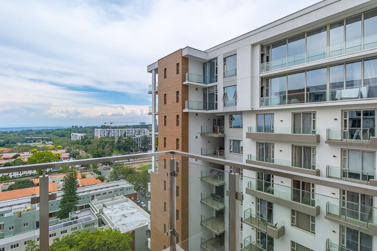 Live steps from Rosebank Mall and Gautrain with sweeping Rosebank and Sandton skyline views, open-plan living with balcony and gourmet kitchen — two bedrooms, two bathrooms.