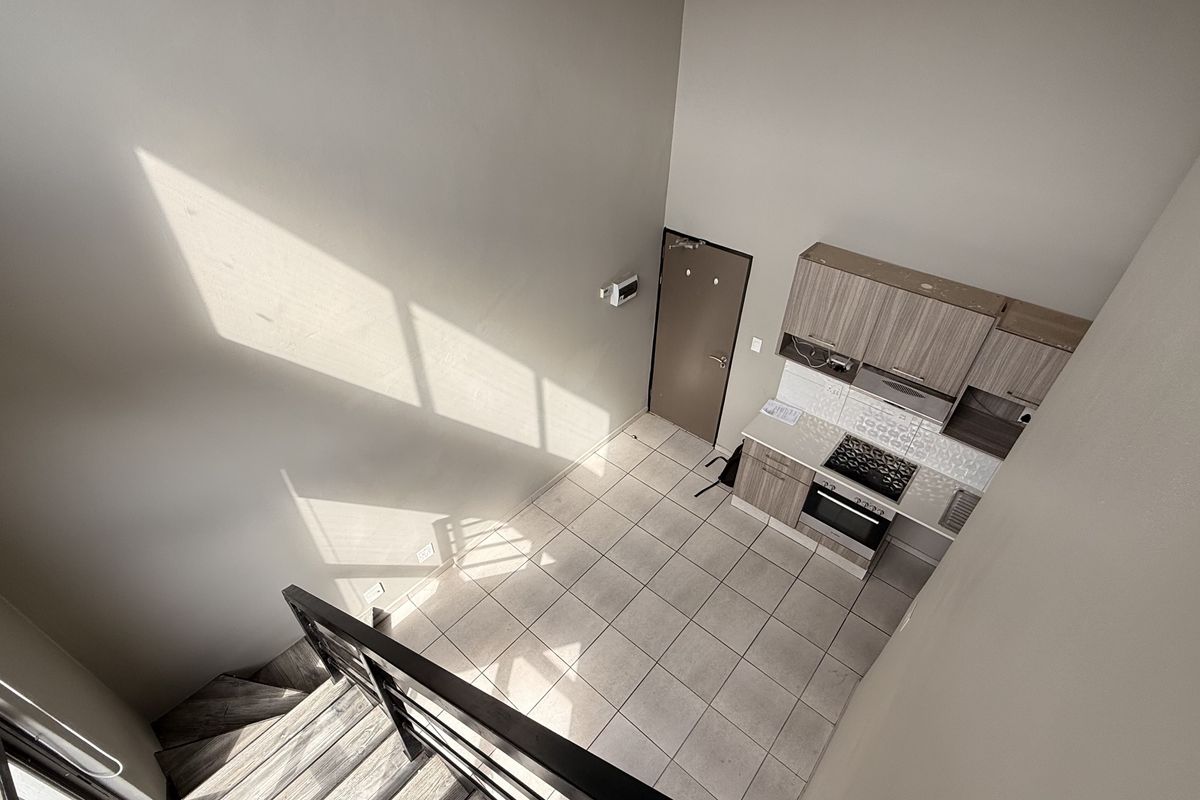 This modern loft style apartment offers a bright and airy living space with double volume ceilings and large windows that flood the unit with natural light. The open plan kitchen is fitted with sleek finishes and flows seamlessly into the living area, creating a comfortable space for both relaxing and entertaining. The unit features a well-designed layout with one bedroom downstairs and a second bedroom upstairs, ideal for added privacy or a work-from-home setup. Prepaid electricity is in place for easy budgeting, while water is billed per month based on usage. Underground parking is available at an additional R200 per month. Residents also enjoy access to lifestyle amenities including a swimming pool, braai area, cinema room, and boardrooms for meetings.