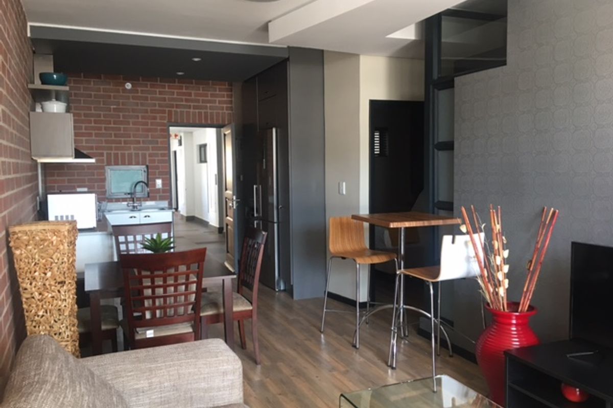 City-convenient living in the heart of Rosebank, steps from Rosebank Mall and the Gautrain. Fully furnished two-bedroom, one-bath with expansive balcony views and two basement parking bays.