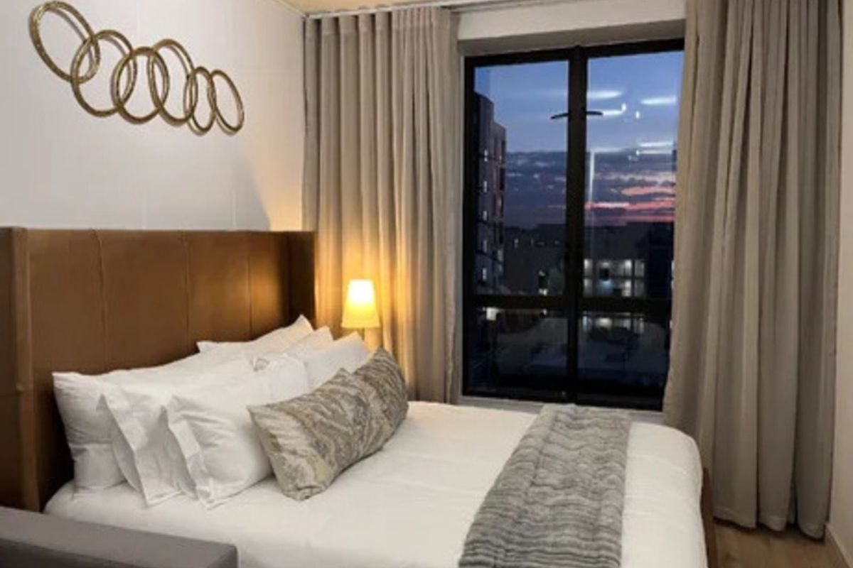 Effortless urban living at OneRosebank — sleek, fully furnished studio offering hotel-like finishes and a gourmet kitchen, steps from Rosebank shops, dining and transport; one bath, covered and open parking.