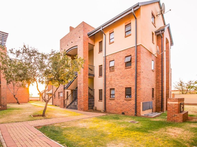 Effortless Midrand living near Carlswald Lifestyle Centre — fully furnished ground-floor apartment with private balcony, pool and clubhouse access, landscaped gardens; two bedrooms, one bath.
