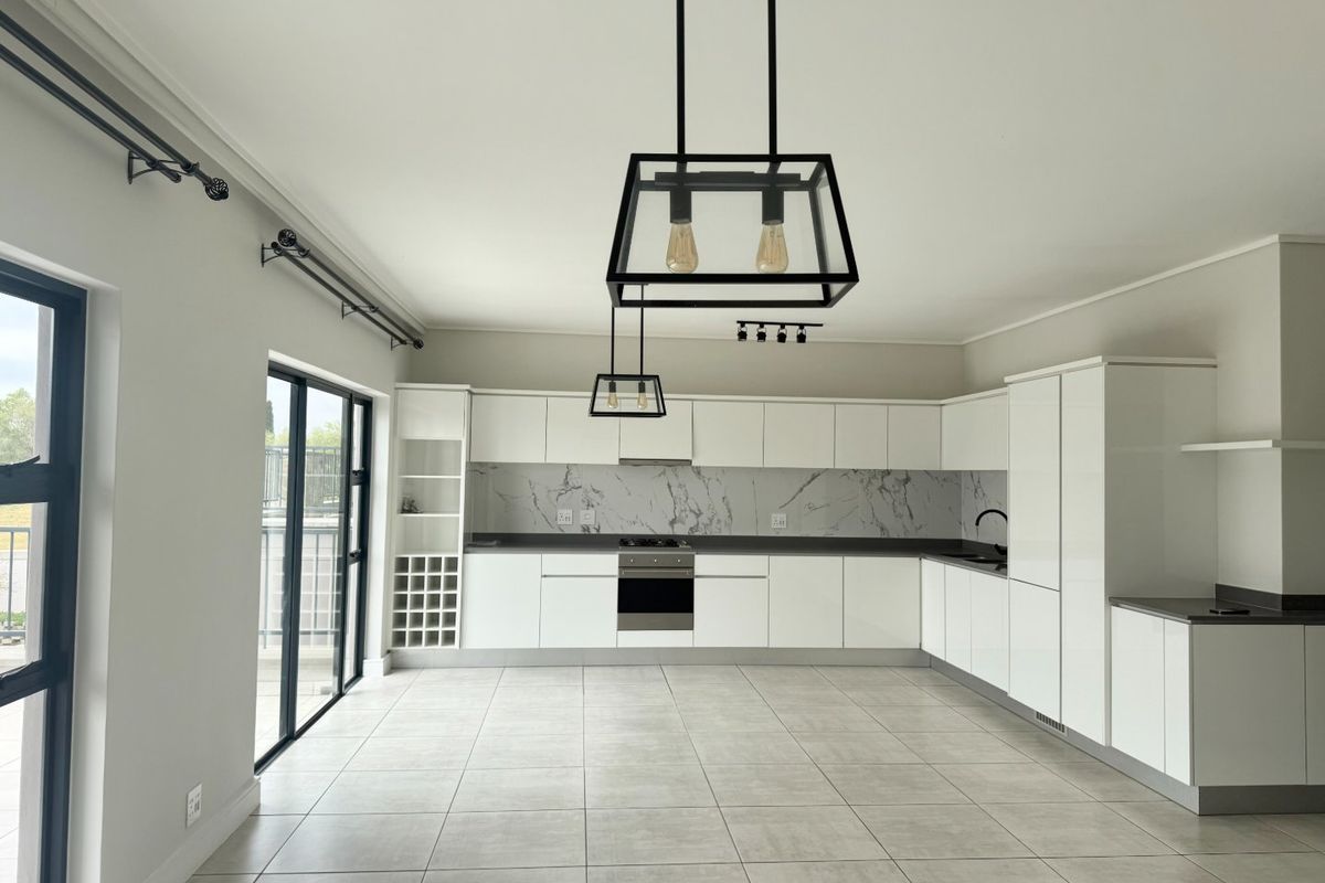 Resort-style penthouse living in eco-conscious Polofields Estate, Waterfall — upscale convenience and rooftop privacy. Covered patio with built-in braai, plus two bedrooms and two bathrooms.