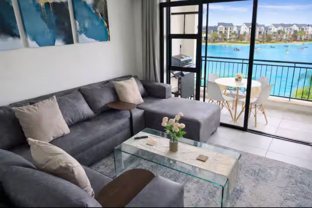 Step out from the lounge onto your private balcony, complete with a gas braai — the perfect setting for sunset evenings while overlooking the sparkling crystal lagoon and pristine beach-style shoreline below. The uninterrupted views create a serene, holiday-inspired atmosphere that feels like a permanent escape.
