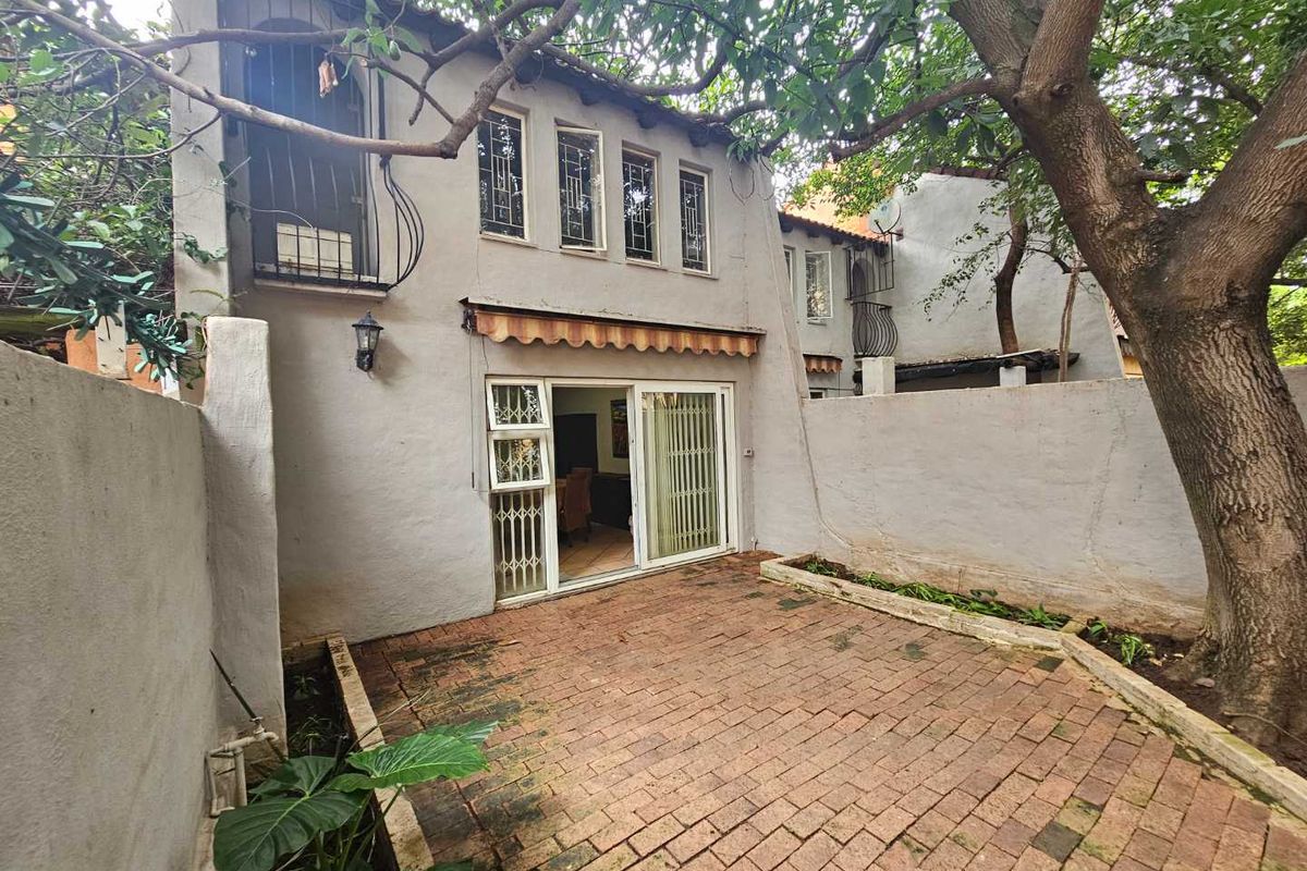 Entertainer's duplex near Brooklyn Mall — expansive under-roof patio overlooking landscaped garden, communal pool and braai. Furnished, two bedrooms, one-and-a-half baths, single garage.