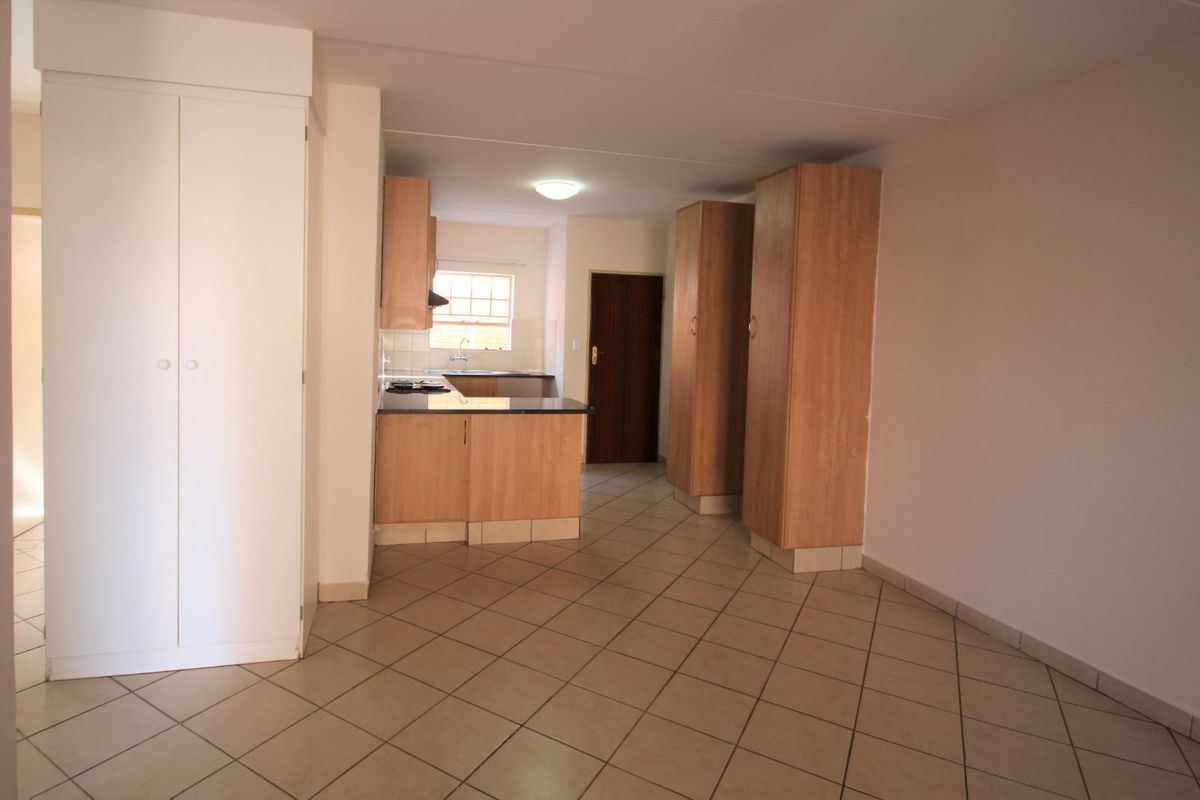 Enjoy loadshedding-free Hazeldean living with resort-style pools and clubhouse; first-floor unit features a covered balcony with built-in braai, modern kitchen, three beds, two baths, garage.