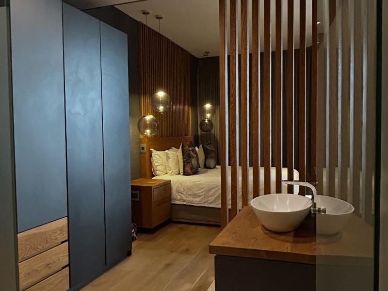 Sophisticated city living in Menlyn Maine with sweeping southern views over Times Square Casino; fully furnished one-bedroom with two basement parking bays and exclusive rooftop pool & restaurant.