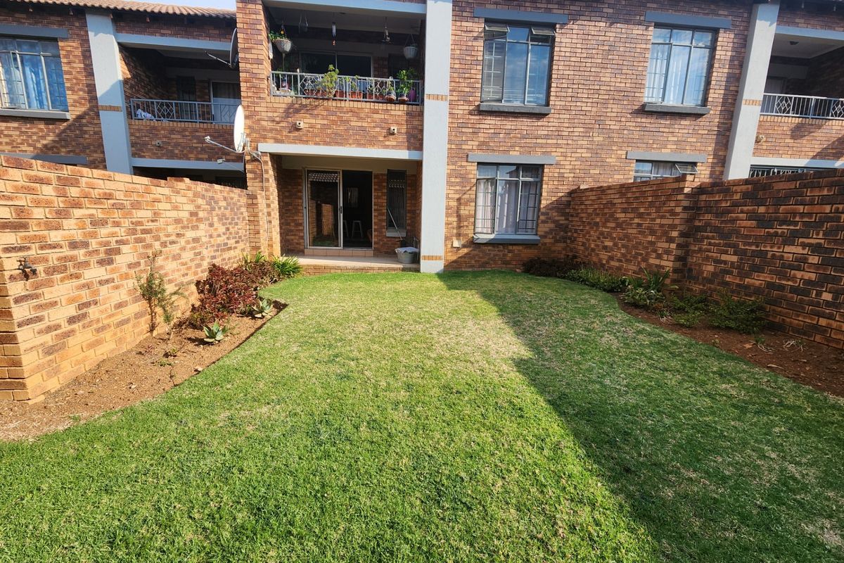 Resort-style living in Mooikloof Ridge with clubhouse, pools, tennis and walking trails; ground-floor 2-bedroom, 1-bath apartment with private garden and lock-up garage.