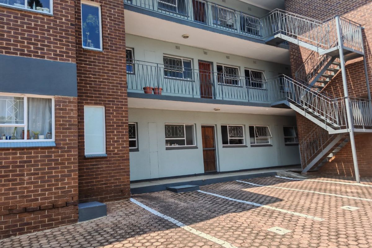 Relaxed ground-floor living in sought-after Linden complex, sunlit open-plan lounge and kitchen opening to communal pool and braai area — secure, enclosed parking; two bedrooms, one bath.