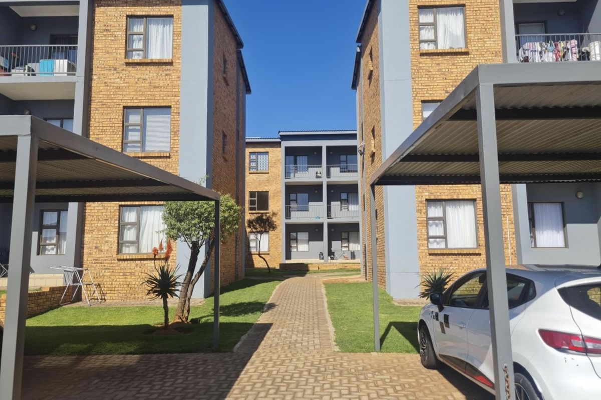 Relaxed living with secure 24-hour access, open-plan interior and sunny balcony — ideal for families enjoying the kiddies and braai area. Two bedrooms, one bath, covered parking.