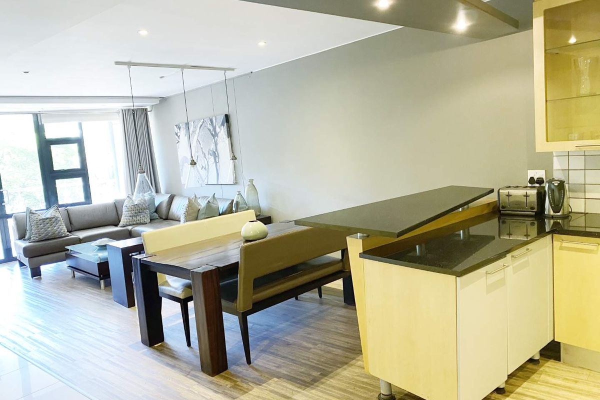Enjoy urban convenience steps from Benmore Shopping Centre and Sandton City, relaxing on a large north facing balcony. Fully furnished with pool, gym, concierge; two beds, two baths.
