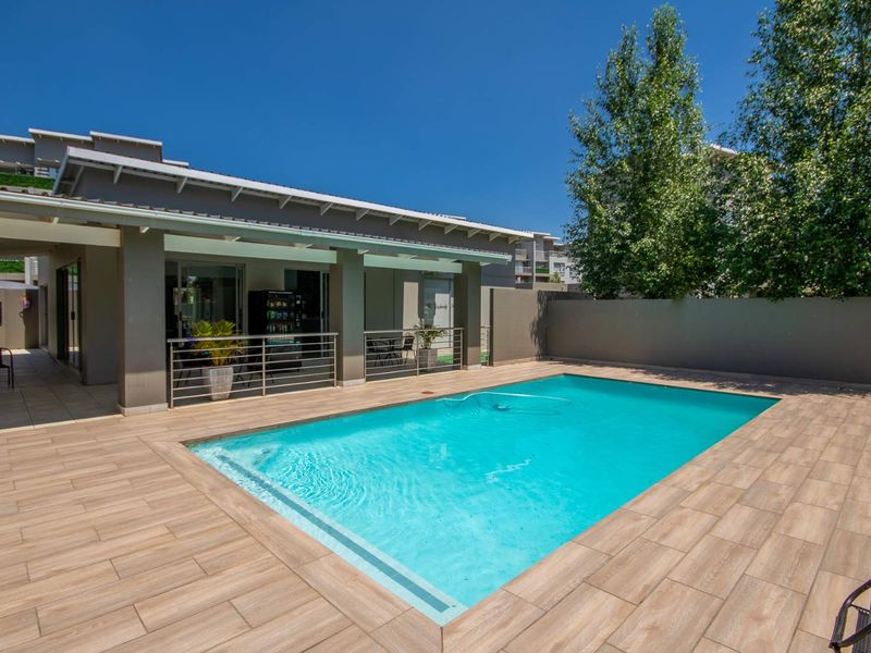 Resort-style living in Ventura Estate, Fourways — relax on your private balcony or enjoy the clubhouse pool and gym. Modern kitchen, one bedroom, one bath, covered carport.