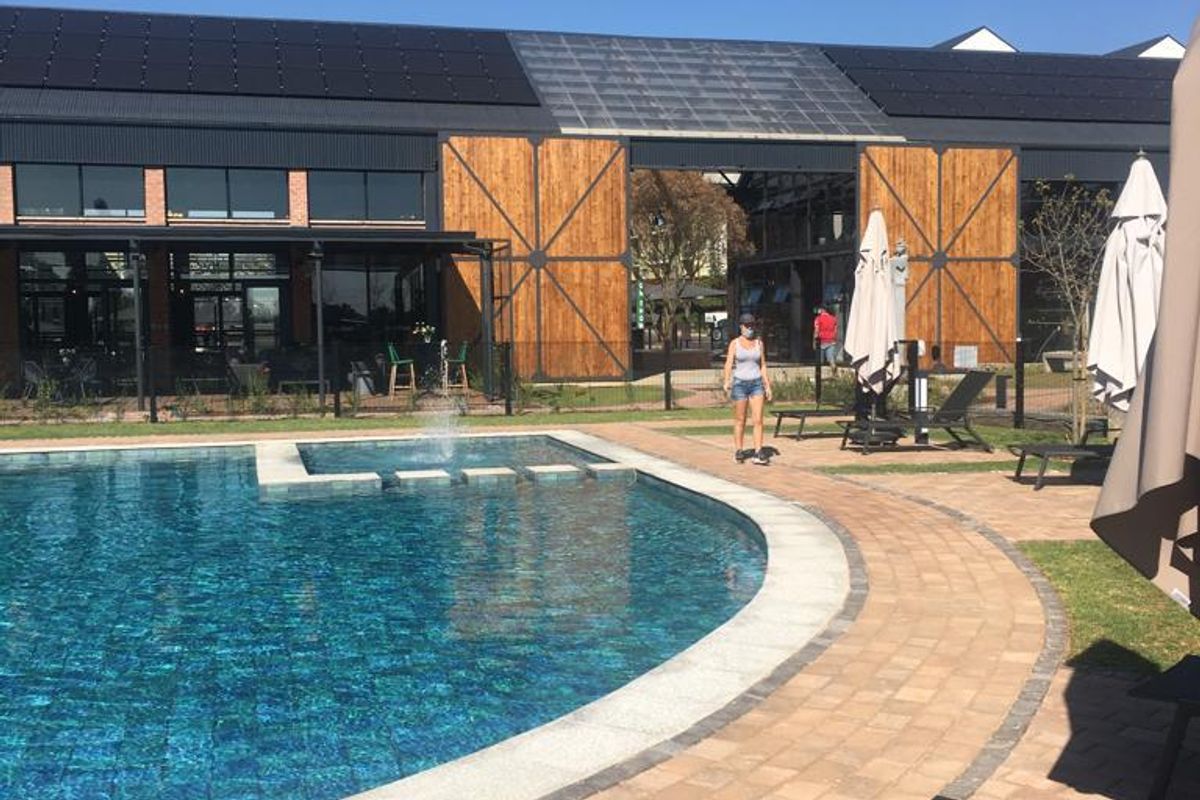 Enjoy active, social living in a secure estate with on-site pizza bar. One-bedroom apartment, one bathroom, offers open-plan kitchen, balcony, study area, pool, gym, and soccer field.