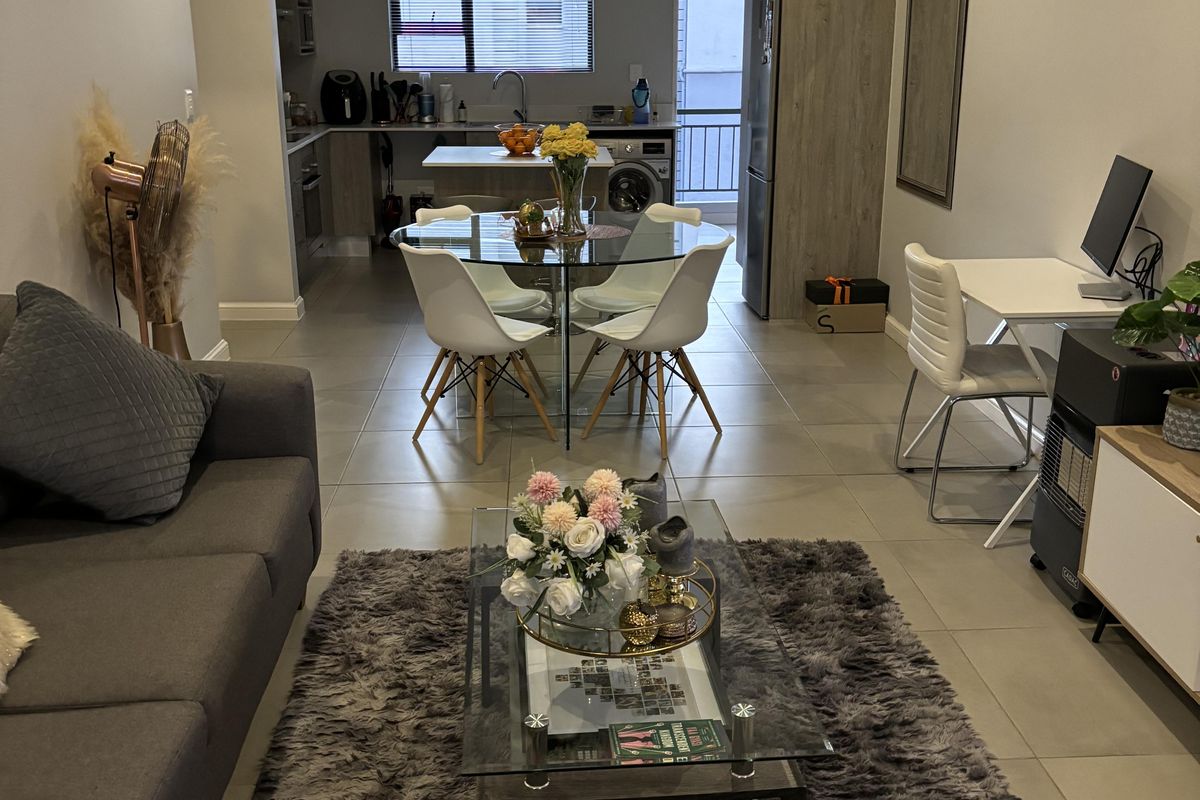 Secure Sandton living with instant access to malls, schools and transport; open-plan kitchen with island, covered patio and complex pool. Two bedrooms, two bathrooms, two covered parking.