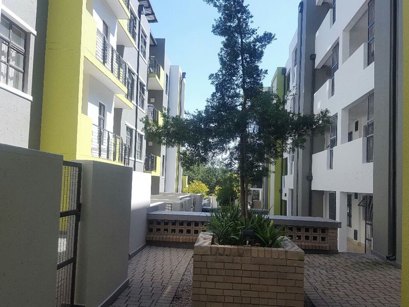 Effortless urban living in the heart of Rivonia, steps from shops and 7 km to Sandton. Ground-floor apartment with private 8m² patio, built-in cupboards, one-bed one-bath and secure basement parking.