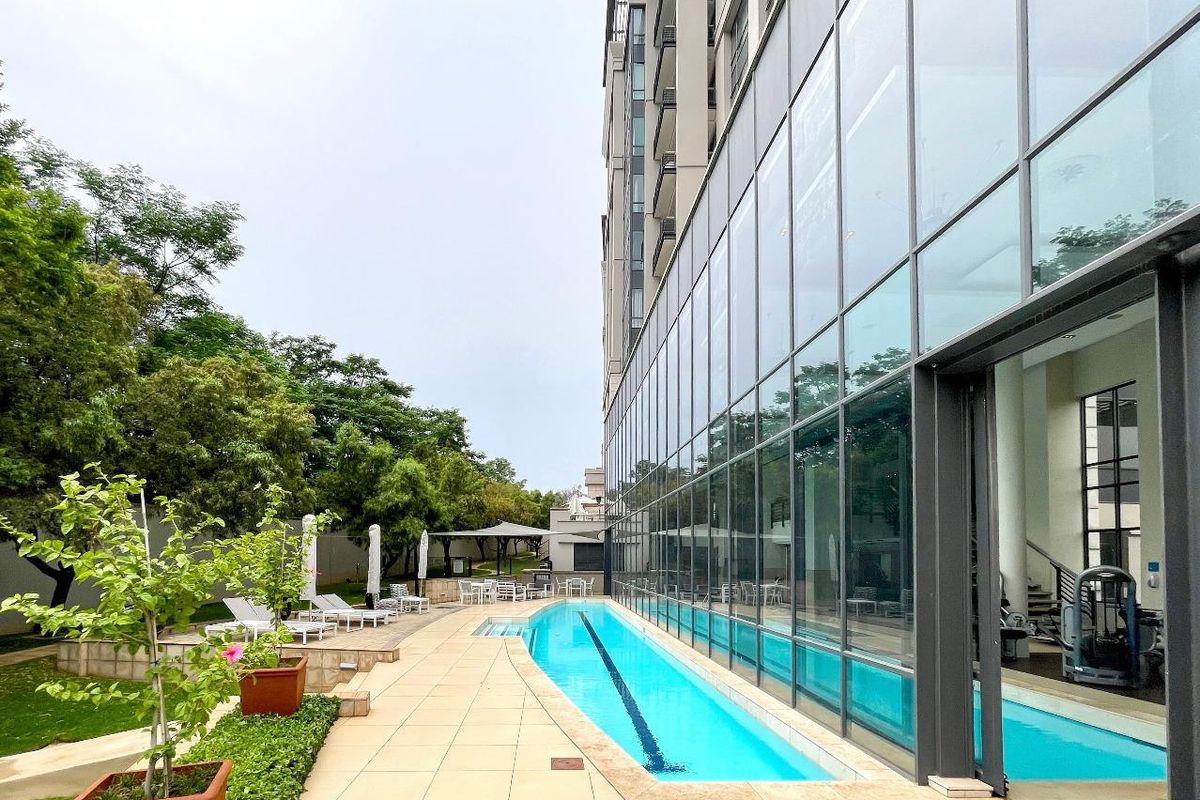 Enjoy upscale living in Sandton's heart, steps from Sandton City, Gautrain and Mediclinic. Private lift, balcony with city views; two bedrooms, 2.5 bathrooms, two parking bays.