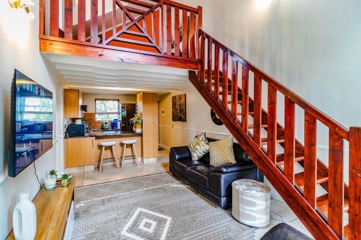 Effortless work-from-home living with garden-facing balconies and clubhouse pool, minutes from Mall of Africa and O.R. Tambo — furnished one-bedroom with loft and covered parking.