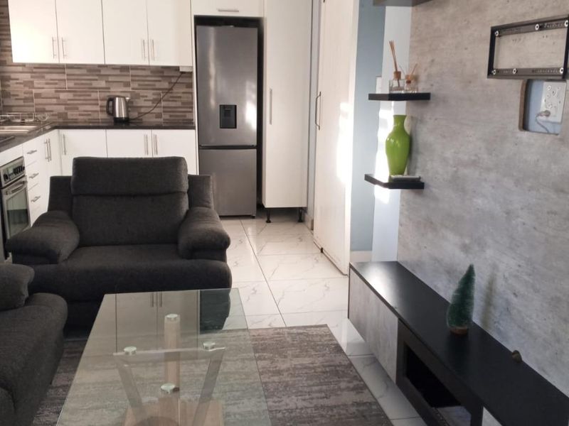 Enjoy vibrant Sandton living with a bright open-plan lounge and marble kitchen, inverter with JoJo water backup for peace of mind — cozy one-bedroom, one-bath apartment.