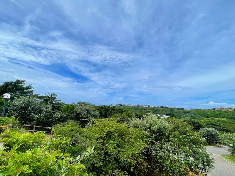 Resort-style living with ocean glimpses and estate trails at Simbithi Eco Estate, featuring a covered patio with built-in braai, one-bedroom, one-bath and two covered parking bays.