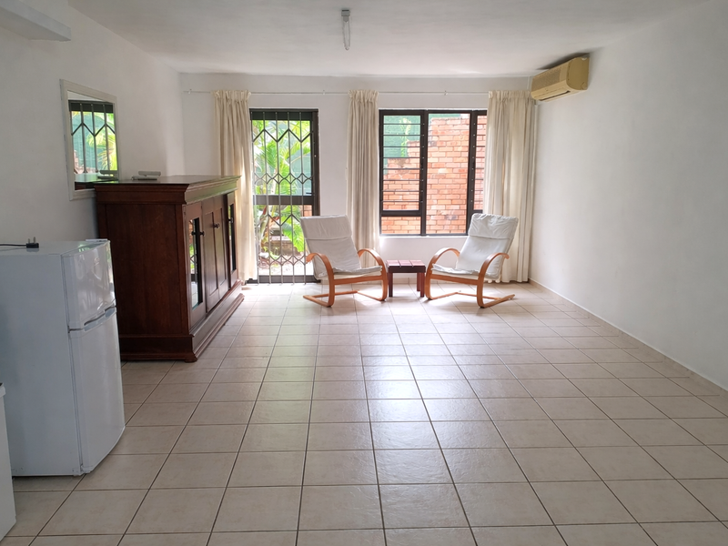 Relaxed beachside living in central Ballito, just 1km from Willard Beach โ semi-furnished studio with private entrance, spacious paved courtyard for braais, communal pool and secure parking.