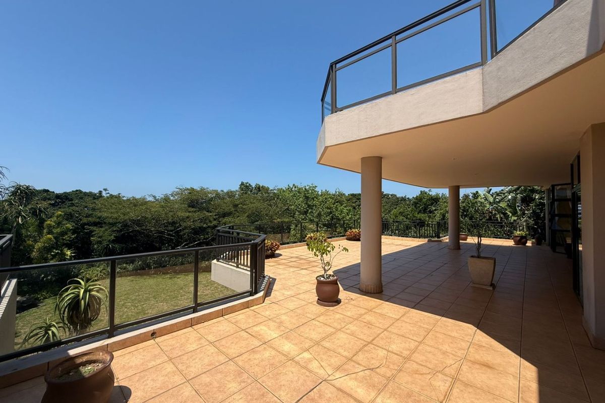 Coastal-forest living in Zimbali Forest Estate, with sweeping partially covered balcony for sunset views; expansive social kitchen, three ensuite bedrooms, guest powder room and double garage.