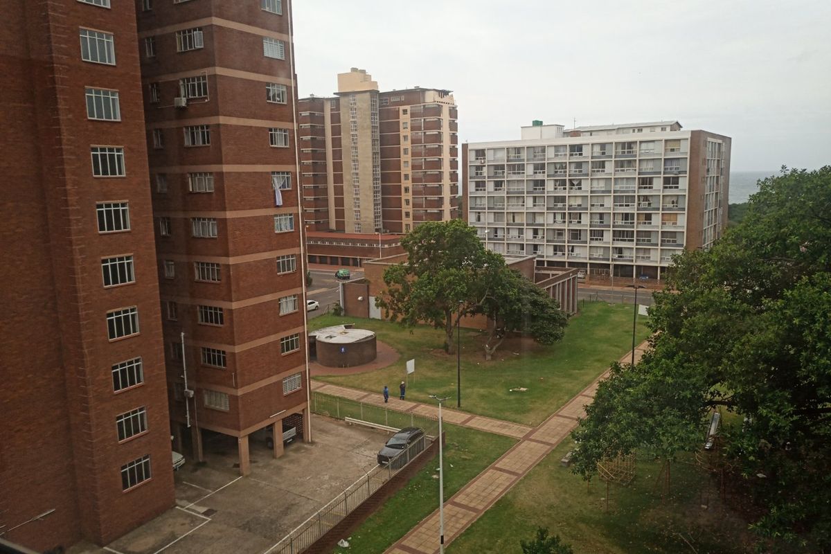 Relax in convenient North Beach Durban living with sunlit rooms and communal green spaces, granite-topped kitchen and wooden bedroom floors — two bedrooms, one bathroom.